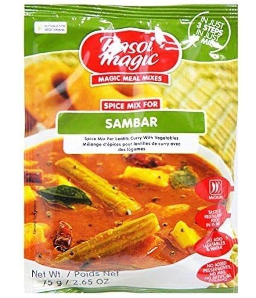 Elevate your Indian cuisine experience with Rasoi Magic Sambar Spice Mix. This 75g pack is the secret ingredient to authentic Indian Sambar. Buy online and relish the traditional flavors in your kitchen. Experience a delightful, tantalizing taste with every meal.
